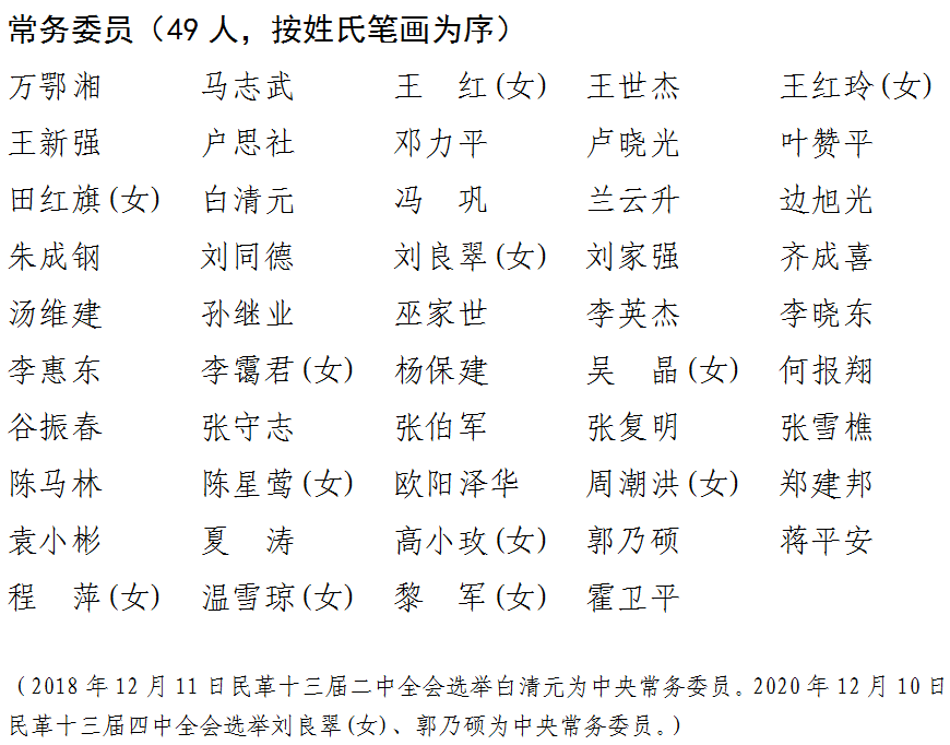 一、民革第十三届中央委员会常务委员名单(49人,按姓氏笔画为序)