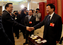2012年3月7日全国“两会”期间,时任国务院副总理李克强亲切会见郑心穗