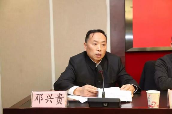 新任会长邓兴贵在会上作表态发言。
