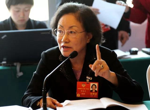 3月7日下午,全国政协十三届一次会议分组讨论宪法修正案草案。图为民革界小组会议上,陈星莺委员发言。