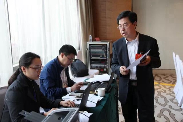 3月5日下午,民革小组讨论结束后,陈德委员与工作人员交流。