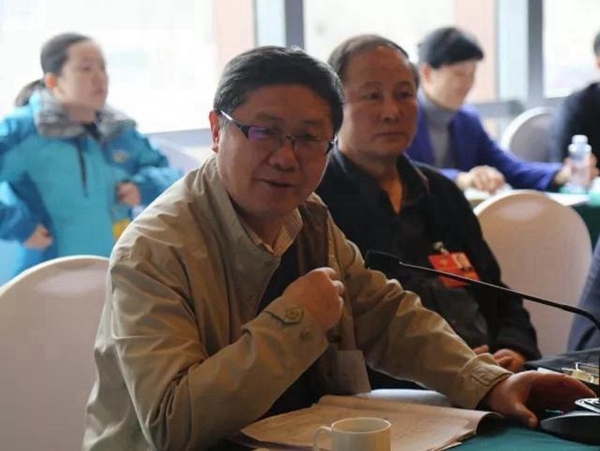 民革中央副主席何报翔委员在民革小组讨论中发言。