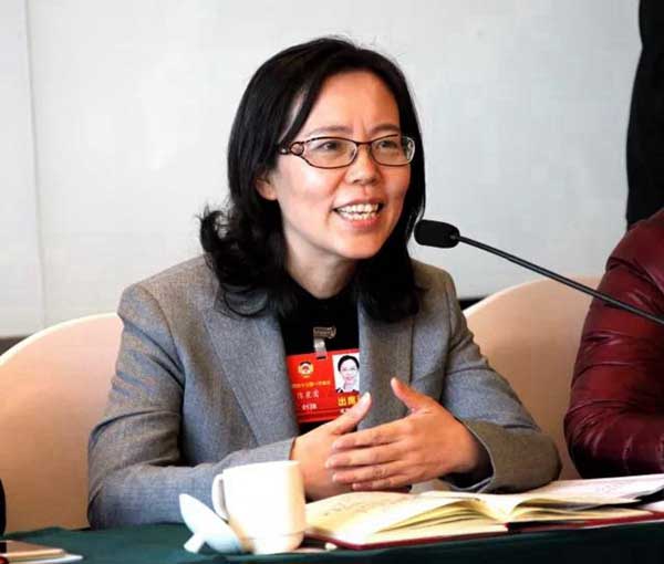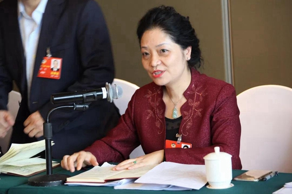 3月7日下午,全国政协十三届一次会议分组讨论宪法修正案草案。图为民革界小组会议上,史小红委员发言。