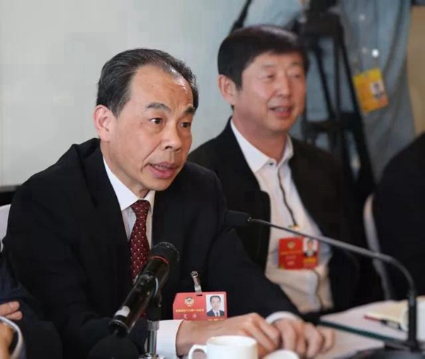3月10日上午,全国政协十三届一次会议分组讨论两高报告。图为民革界小组会上,李生龙委员发言 。