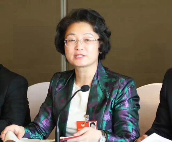 3月7日下午,全国政协十三届一次会议分组讨论宪法修正案草案。图为民革界小组会议上,民革中央副主席高小玫委员发言。