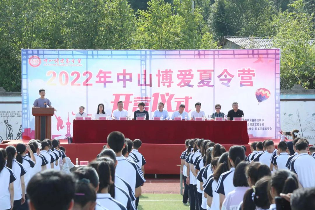 8月15日,2022年中山博爱夏令营在贵州省纳雍县思源实验学校举行开营仪式。夏令营由中山博爱基金会主办,民革中央社会服务部、中共纳雍县委统战部、纳雍县教育科技局、纳雍县思源实验学校承办,民革北京市委会、民革辽宁省委会、民革河南省委会协办,坚持农村脱贫户子女、留守儿童、困难学生优先原则,从纳雍县各乡镇(街道)中学、县直学校选拔七、八年级品学兼优学生240人作为入营团员,活动持续至8月20日。