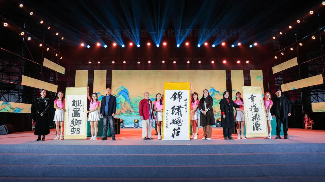 值得关注的是,活动中的书法创作与赠送环节更是将文化助力落到实处。浙江省书法家协会理事林孝爽、浙江省书法家协会会员郎涤阳以及教育管理博士、杭州市书协副秘书长黄河月现场挥毫,共创书法作品《书韵江南》,笔锋游走间尽显古韵今风。随后,这些饱含墨香的珍贵作品分别被赠予姚庄镇、桃源新邨社区、丁栅村,为当地文化阵地建设添砖加瓦,让艺术之美扎根乡村。