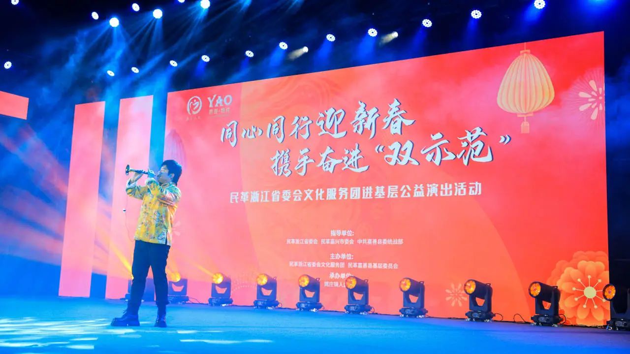 新春佳节将至,嘉善县姚庄镇沉浸在一片浓郁的文化氛围之中。1月5日晚,由民革浙江省委会文化服务团倾心打造的进基层公益演出活动在姚庄体育馆热烈举行,以“同心同行迎新春 携手奋进‘双示范’”为主题,为姚庄百姓送上了一份别开生面、精彩纷呈的文化厚礼,奏响乡村振兴的新春乐章。
