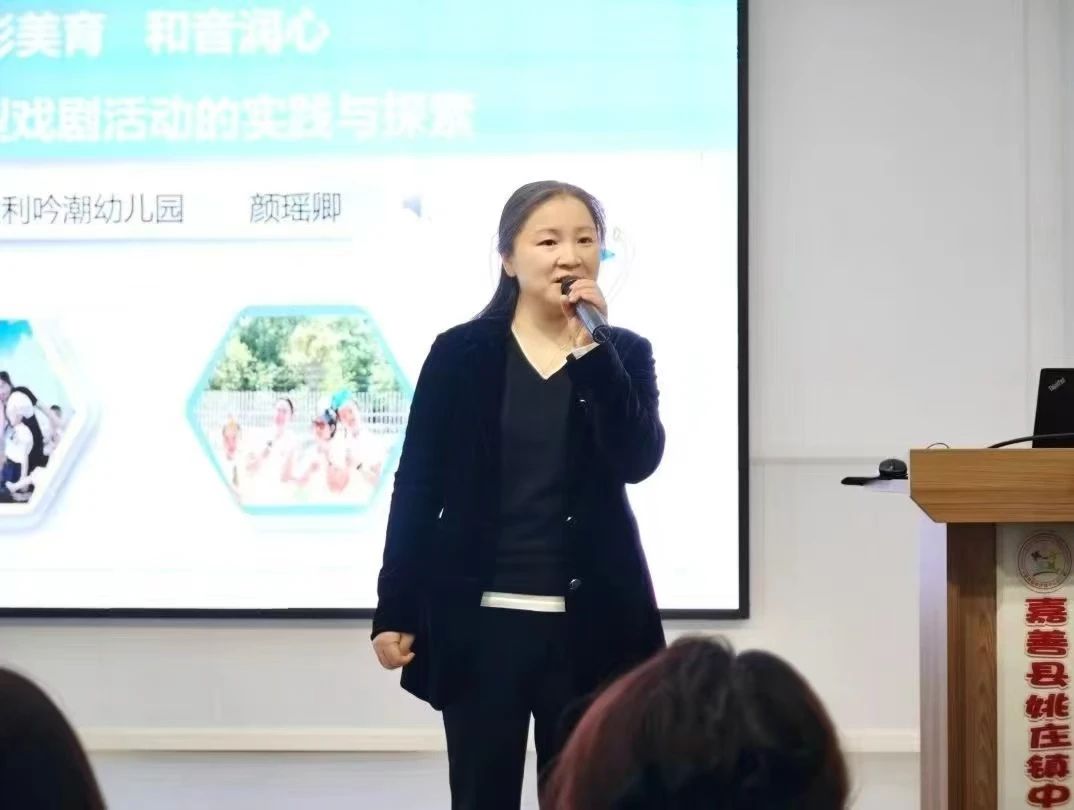 随后,省政协委员、民革浙江省委会教育服务团副团长、杭州市胜利吟潮幼儿园名师工作室带头人颜瑶卿开展了《多彩美育 和音润心——幼儿园微型戏剧活动的实践和探索》专题讲座,结合其原创韵律教学体系构建经验,系统解析当前学前教育发展趋势,通过展示全国获奖教学案例视频,深入浅出地阐释了游戏化教学、师幼互动质量提升等关键要素,重点分享了“多彩生命教育”实践成果,为乡村幼儿园课程建设提供了新思路。