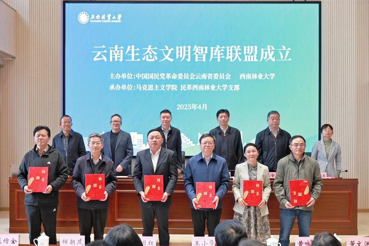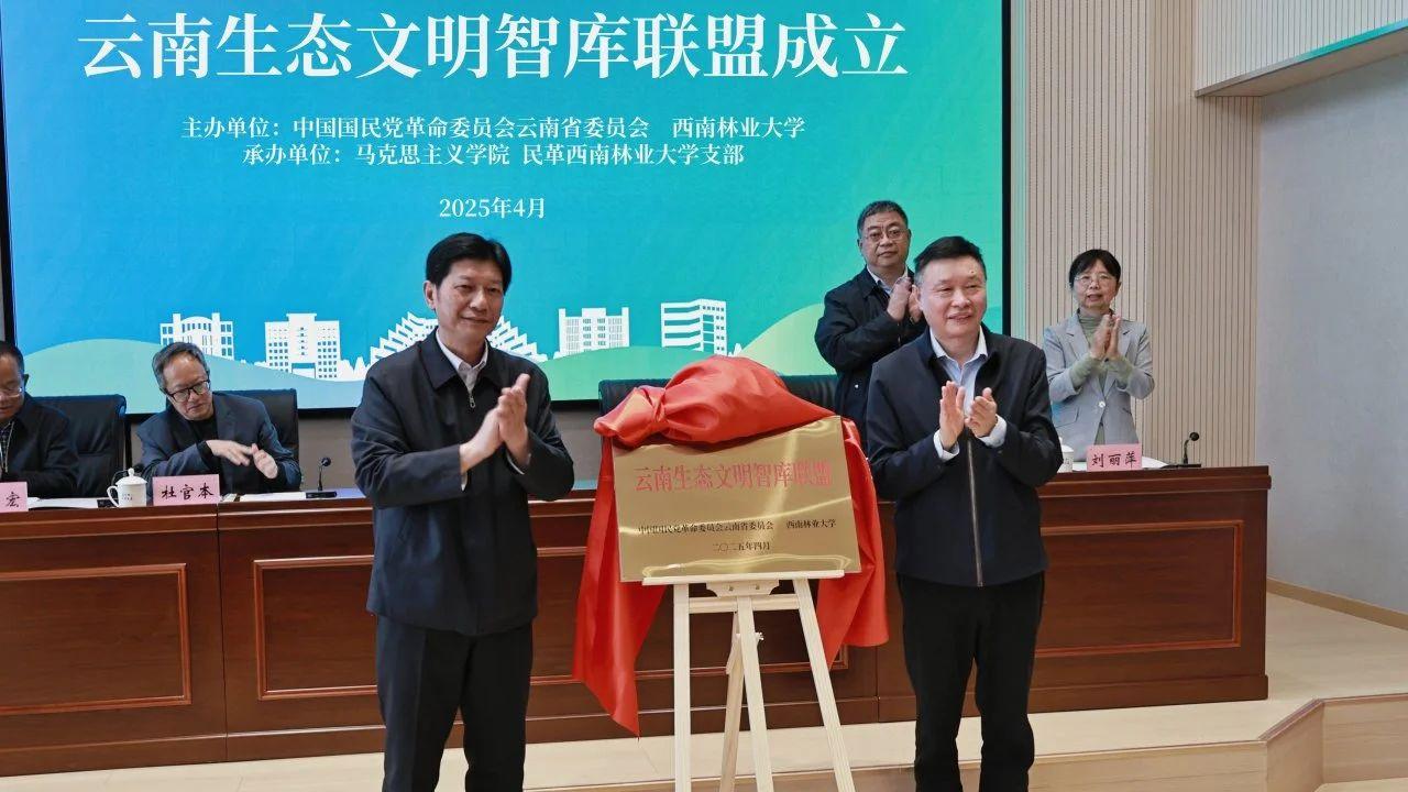 为深入学习贯彻习近平生态文明思想和习近平总书记考察云南重要讲话精神,充分整合人才智力资源、支撑服务生态文明建设,4月9日,民革云南省委会和西南林业大学合作共建的云南生态文明智库联盟正式揭牌成立。民革云南省委会主委于干千,西南林业大学党委书记李永勤,民革云南省委会副主委杜官本、王智勇,云南省生态环境科学研究院经研中心主任刘丽萍以及民革云南省委会相关处室负责人,部分智库专家代表、民革西南林业大学支部党员、马克思主义学院教师代表出席揭牌仪式。仪式由西南林业大学党委副书记魏宏主持。