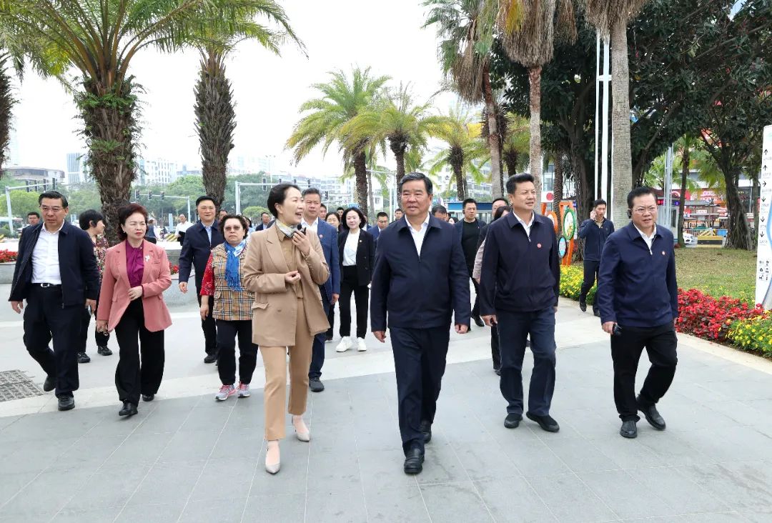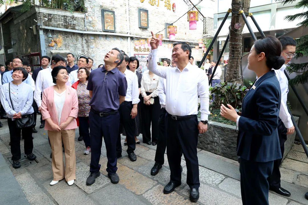 调研组一行在湛江实地考察了金沙湾滨海商圈、赤坎老街、廉江市安铺镇,了解湛江城市商业、历史文化特色街区及古镇文旅融合等相关情况;在茂名走访了根子荔枝种植园、柏桥讲堂、沙桐香街,听取荔枝产业发展、根子柏桥龙眼荔枝专业合作社建设运行、沉香产业发展等情况介绍;在广州前往永庆坊、1906科技园、唯品会总部、广州塔广场、腾讯微信总部,调研高质量实现老城区焕发新活力、广州打造国际消费中心城市等经验成果和意见建议。