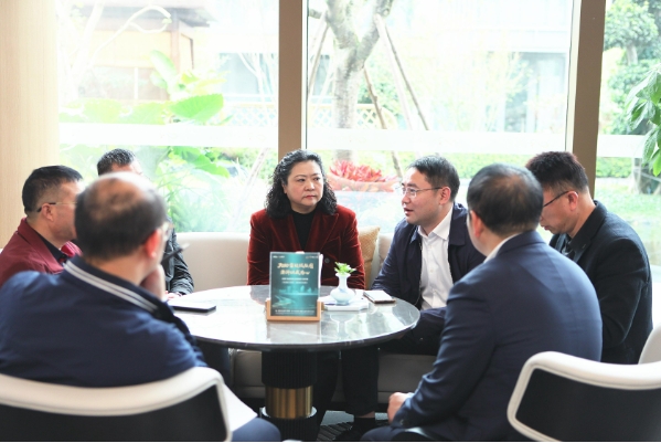 2022年11月12日,民革四川省直工委学习贯彻中共二十大精神专题会期间,李娟与企业家党员交流谈心。