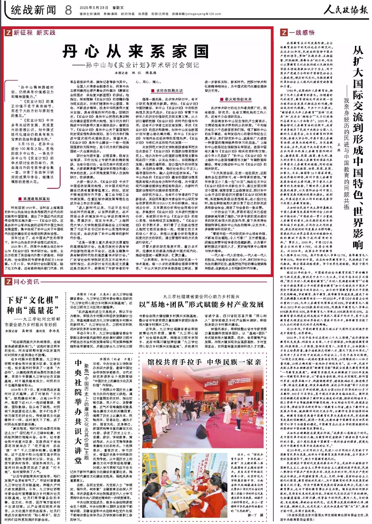 2025年5月,民革中央牵头举办孙中山与《实业计划》学术研讨会。会前,主办方收到了来自海内外数十家高校、科研机构、社会团体的专家学者的征文130余篇。5月15日,学术研讨会如期而至,除了论文作者,还有政府相关部门代表、民革各级组织代表、媒体记者等参与其中。