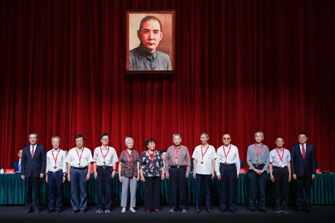 庆祝大会上,李惠东、徐明非向民革党龄在30年及以上的老党员代表颁发纪念章。