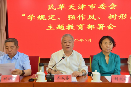 5月26日下午,民革天津市委会“学规定、强作风、树形象”主题教育部署会在团结大厦召开。天津市政协副主席、民革天津市委会主委齐成喜出席会议并讲话。市委会副主委刘凯华、杜洪印、王红梅、孙晓光、郭书宏、耿延候出席。市委会秘书长周潮洪主持会议。