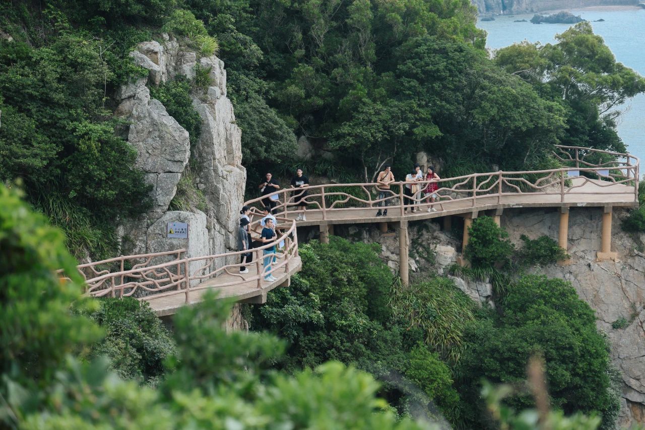 23日下午,台湾青年走进洞头区半屏山同心小镇。“半屏山,半屏山,一半在洞头,一半在台湾”——这首流传数百年的闽南民谣,道出洞头与台湾血脉相连的深厚渊源。在洞头半屏山巅,一座“同源同根碑”静静矗立。台湾青年与民革党员一同走近这座碑,低声念诵碑文:“两岸半屏,乡音乡情。珠联璧合,共赢荣景。”台湾青年蔡孟轩不由得感叹:“没想到两岸半屏山还有这般连接,让我们感受到原来两岸真的这么近,两岸同胞本就是一家人!”