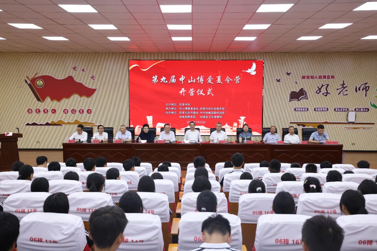 7月29日,第九届中山博爱夏令营在贵州省纳雍县第一实验小学举行开营仪式。夏令营由民革中央主办,中山博爱基金会、民革中央社会服务部承办,民革北京市委会、中共纳雍县委统战部、纳雍县教育局、纳雍县卫生健康局协办。民革中央副主席兼秘书长李惠东宣布夏令营开营,并向夏令营代表授旗。民革贵州省委会主委王世杰出席开营仪式。