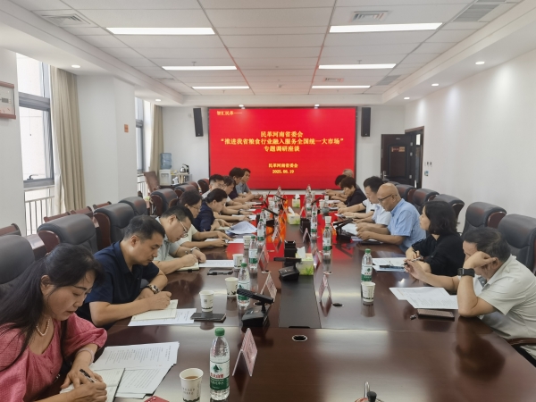 8月19日,民革河南省委会在郑州召开“推动河南粮食行业融入服务全国统一大市场”专题调研座谈会。民革河南省委会副主委吕心阳出席会议并讲话。河南省粮食和物资储备局、河南工业大学、郑州粮食批发市场、中华粮网的有关同志及课题组的专家学者和机关宣传处相关工作人员参加会议。