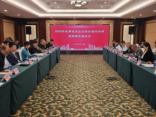10月25日,民革中央联络部部长(主持社会服务部工作)张庆盈、民革云南省委会主委于干千共同率队赴南昌召开2025年民革党员企业家云南行活动招商推介会。民革江西省委会主委熊皓出席会议,副主委熊彤主持会议。云南省投资促进局副局长赵怀君、民革云南省委会专职副主委王智勇参加招商推介会。