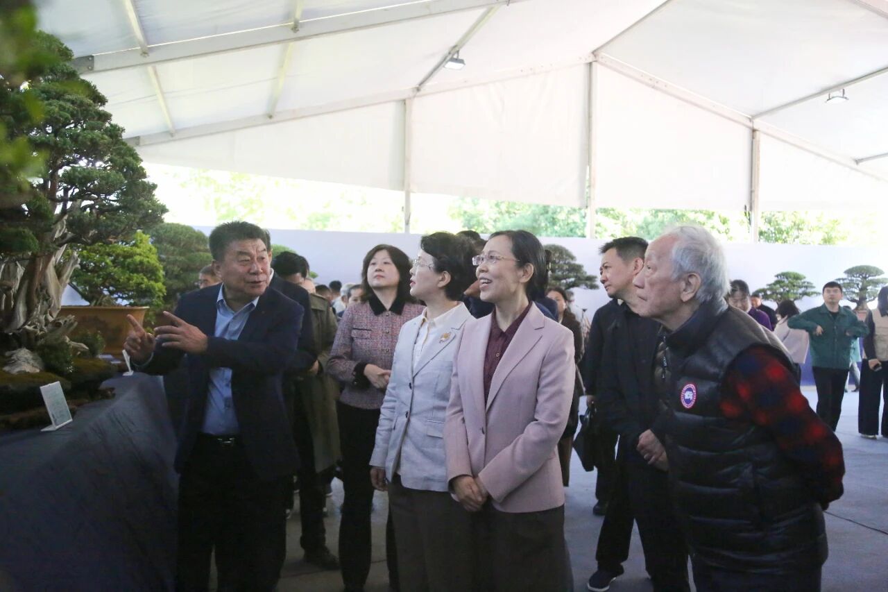 开幕式后,与会领导嘉宾前往盆景艺术展区,参观两岸盆景艺术家带来的200余件匠心之作。