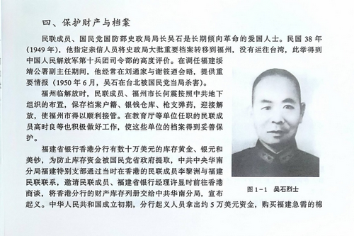 1948年底,吴石调任福建绥靖公署副主任,向中央社会部联络人谢筱廼提供了国民党军队在福建省的战斗序列、兵力统计情报和在长江以南川、滇、湘、粤、闽各省的部队建制、兵力等绝密材料,并将拟运往台湾的298箱军事绝密档案设法移交福州军管会。他还积极协助策反同乡好友、海防第二舰队司令林遵率30艘舰艇、1200余名海军官兵起义,使之成为人民海军的新兴力量。