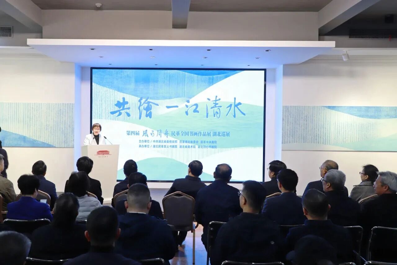 11月22日,“共绘一江清水”第四届“风雨同舟”民革全国书画作品展湖北巡展在湖北省美术院美术馆开幕。
