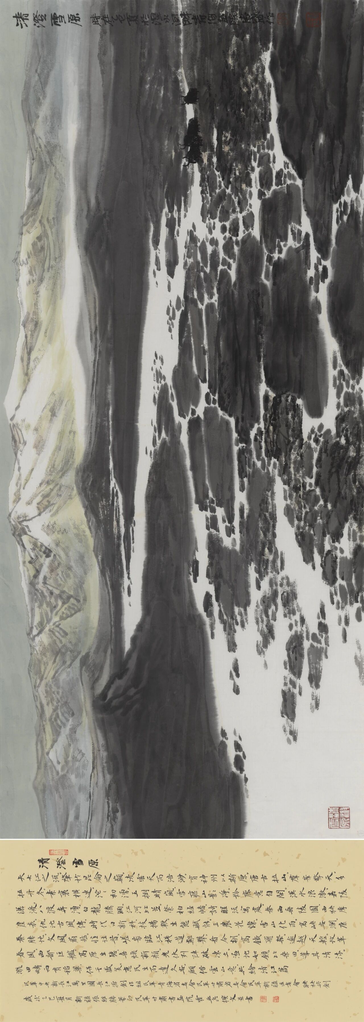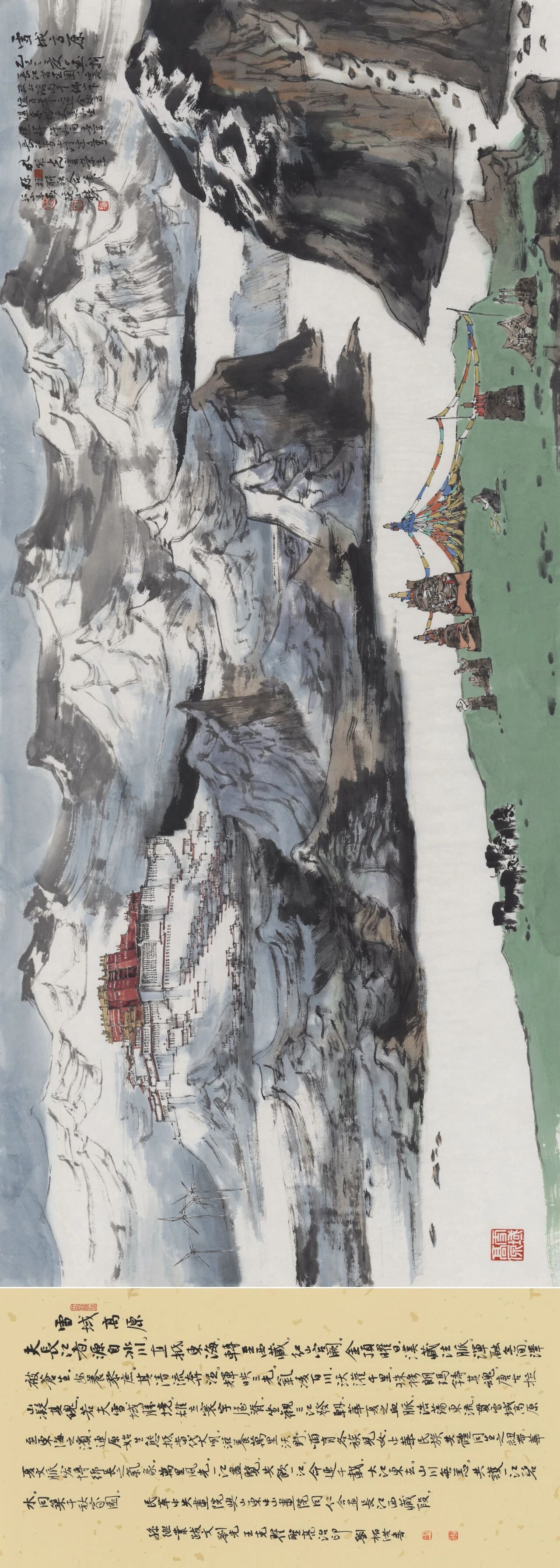 民革中央画院与山东中山画院同仁合画长江西藏段。孙继业跋文,刘光、王克、翟圣亮治印,刘楣洪书。