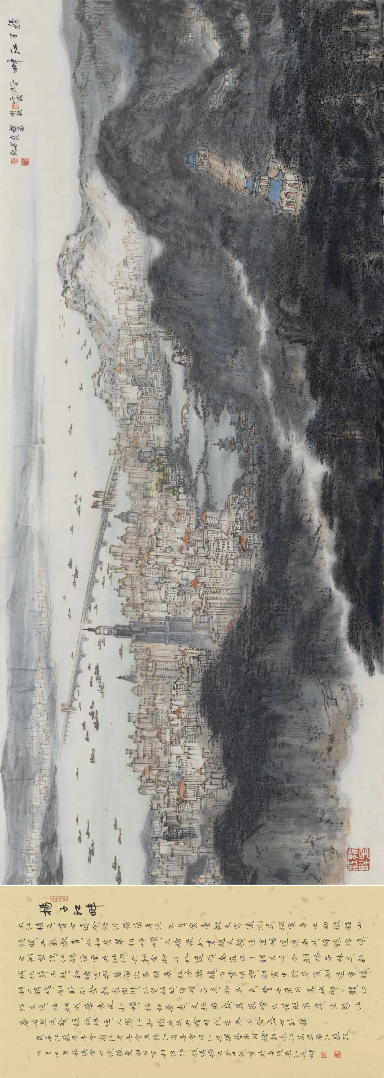 赞曰:长江万里,楚地钟灵;古今辉映,气象天成。绘此长卷,以志千秋;山河永续,文脉长兴。