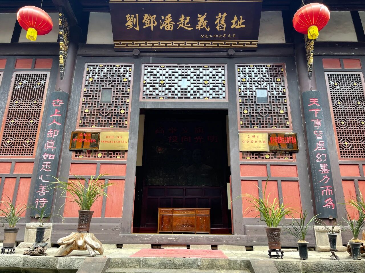 “刘、邓、潘”起义旧址位于彭州市天彭镇北大街龙兴寺藏经楼二楼,占地面积约300平方米,建筑面积约700平方米。该藏经楼曾是刘文辉、邓锡侯、潘文华三人秘密通电毛泽东和朱德、发起“成都起义”的所在地。起义从1949年12月9日刘文辉等起义人员入驻彭县古庙龙兴寺起至12月27日撤离龙兴古刹止,历时18天,在中国人民解放军的迅猛进攻下,在“刘、邓、潘”三人起义带动、特别是统战小组吕振修等同志的“策反”下,国民党聚集在四川的90多万部队人员中,有36万人起义、15万人投诚、40万人被歼,号称“天下无敌”的胡宗南部也被彻底消灭。