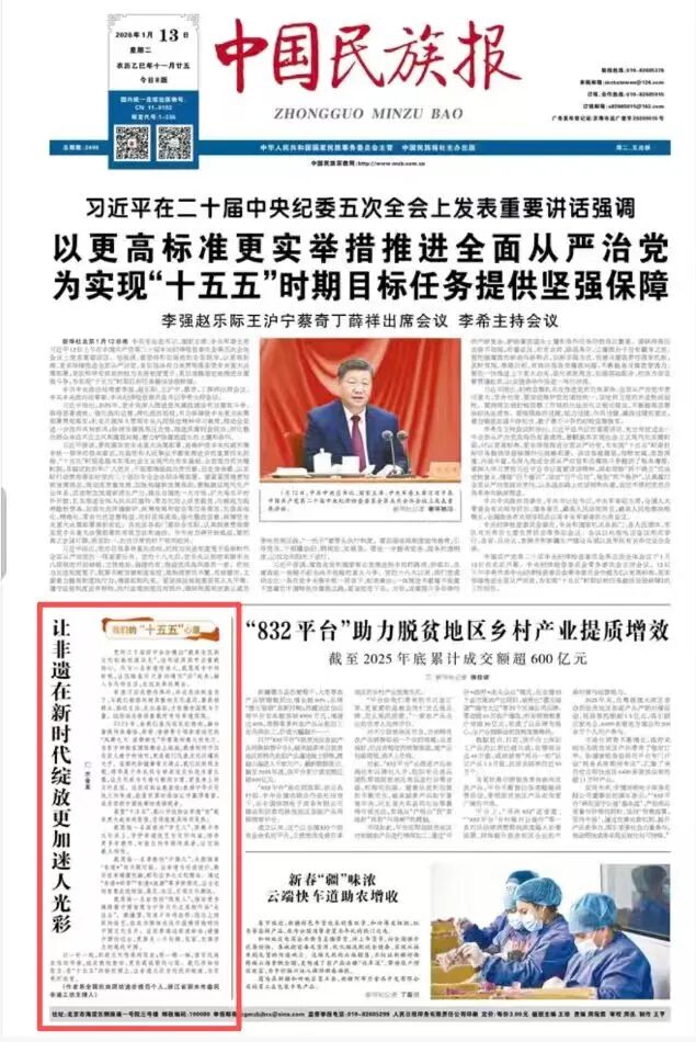 1月13日,民革党员、全国民族团结进步模范个人、浙江省丽水市畲凤非遗工坊主理人兰金美在《中国民族报》发表文章《让非遗在新时代绽放更加迷人光彩》。全文如下: