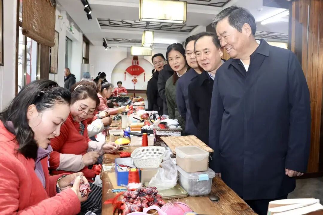 1月13日,调研组在徐州市贾汪区马庄村调研民革徐州市委会社会服务基地(马庄香包产业)。