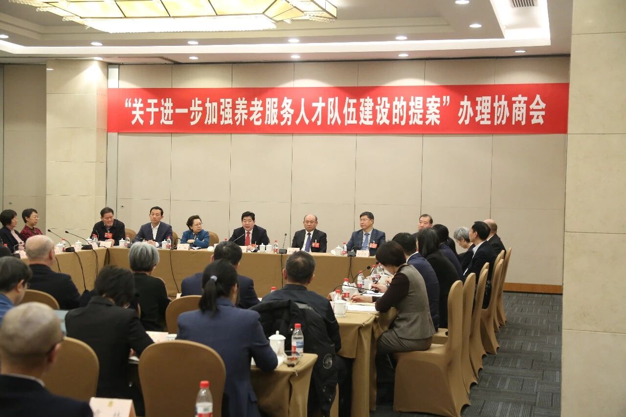 1月27日下午,北京市政协十四届四次会议举行两场“会中办提案”提案办理协商会。图为“关于进一步加强养老服务人才队伍建设的提案”办理协商会现场。