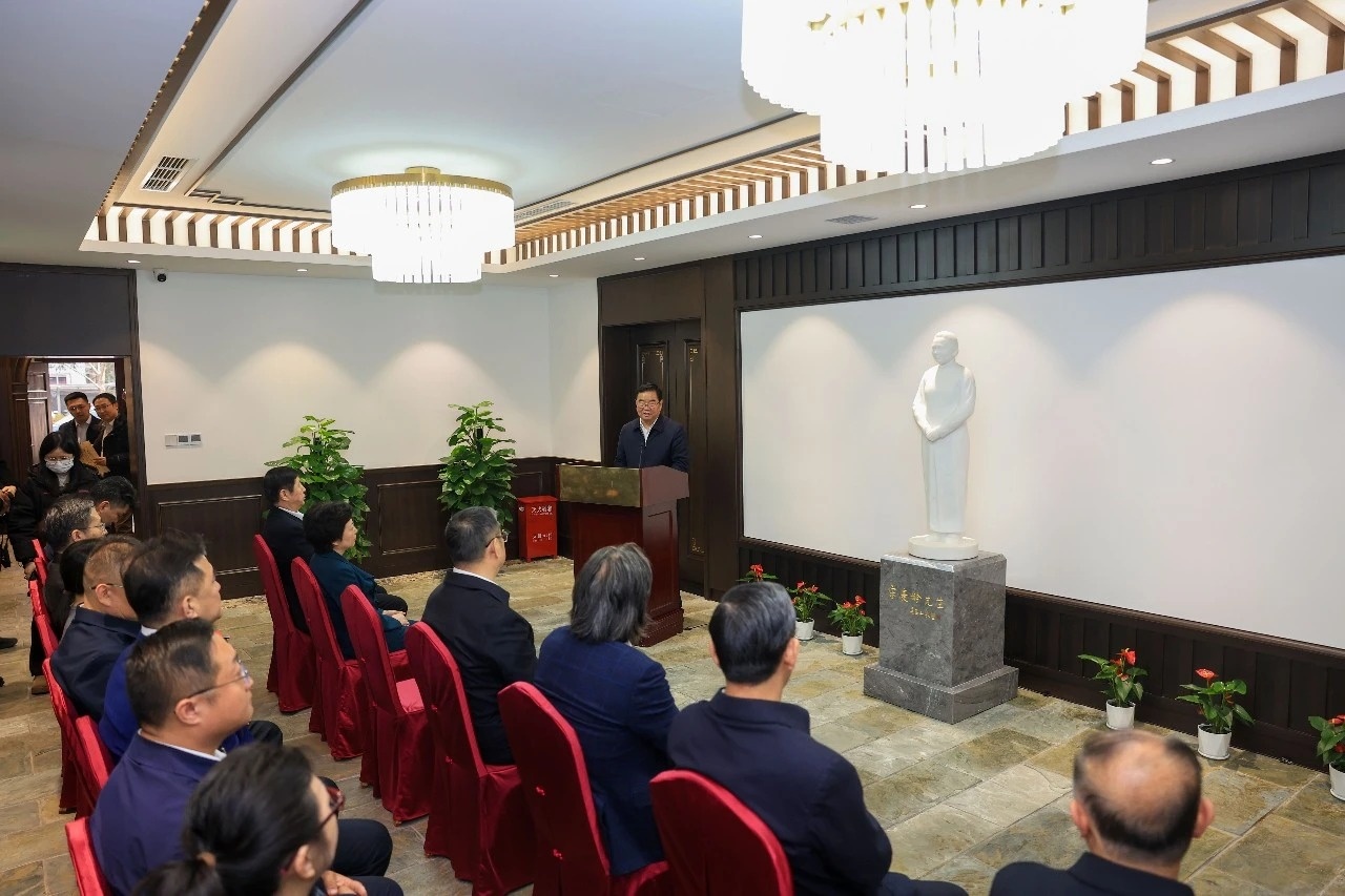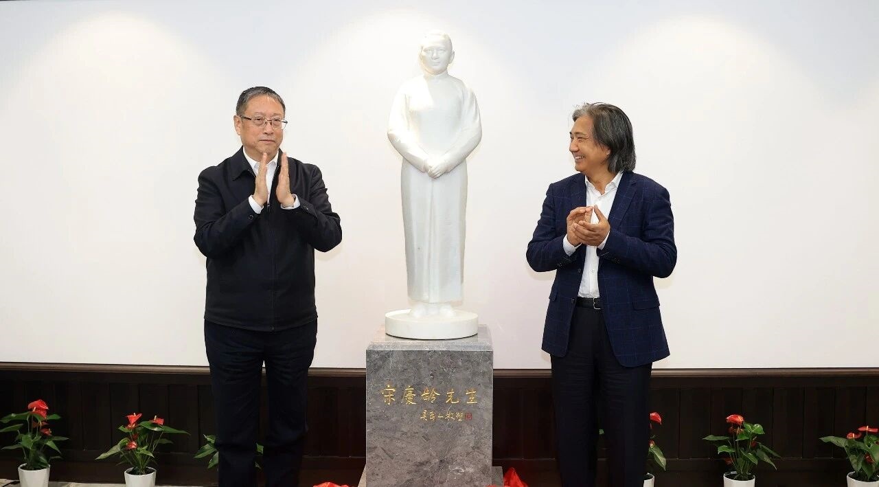 捐赠仪式上,郑建邦为吴为山颁发捐赠证书。郑建邦、吴为山共同为宋庆龄先生雕塑揭幕。