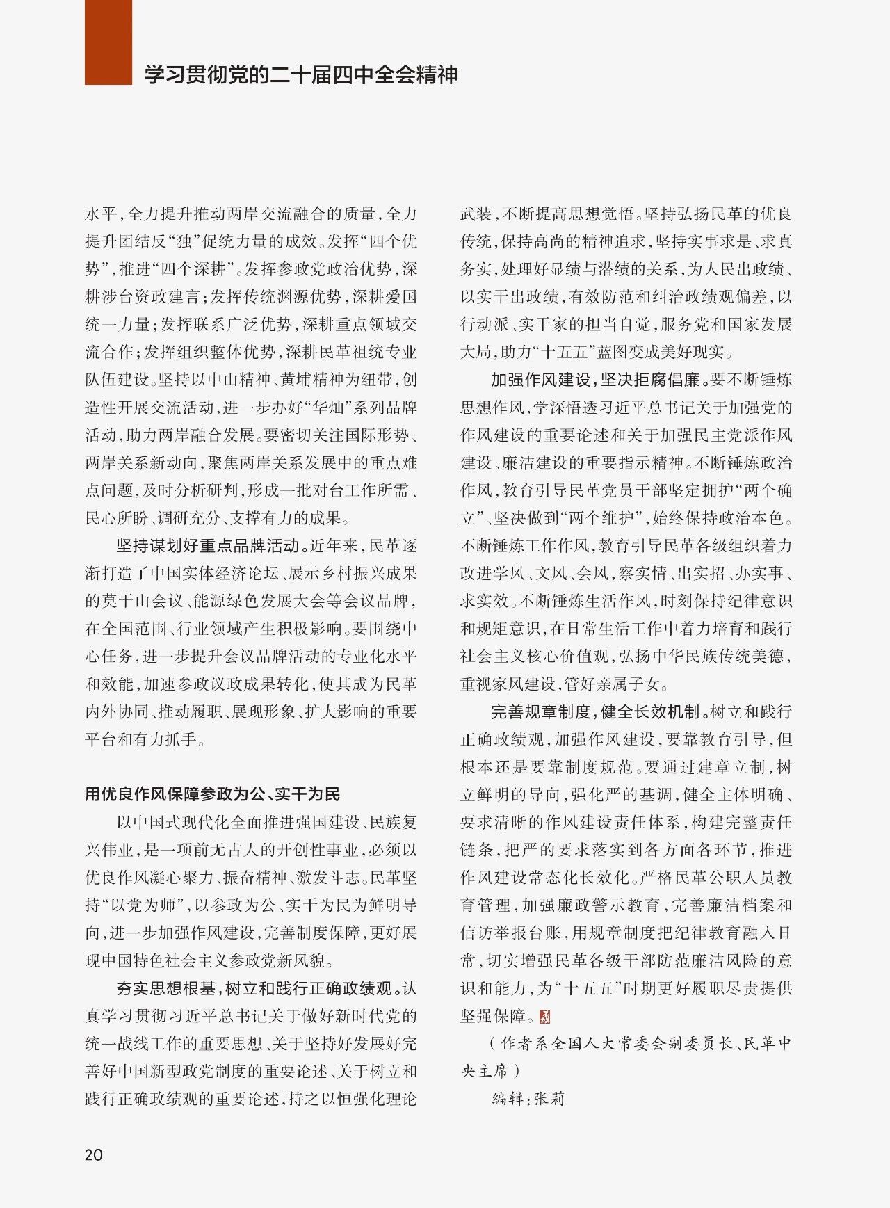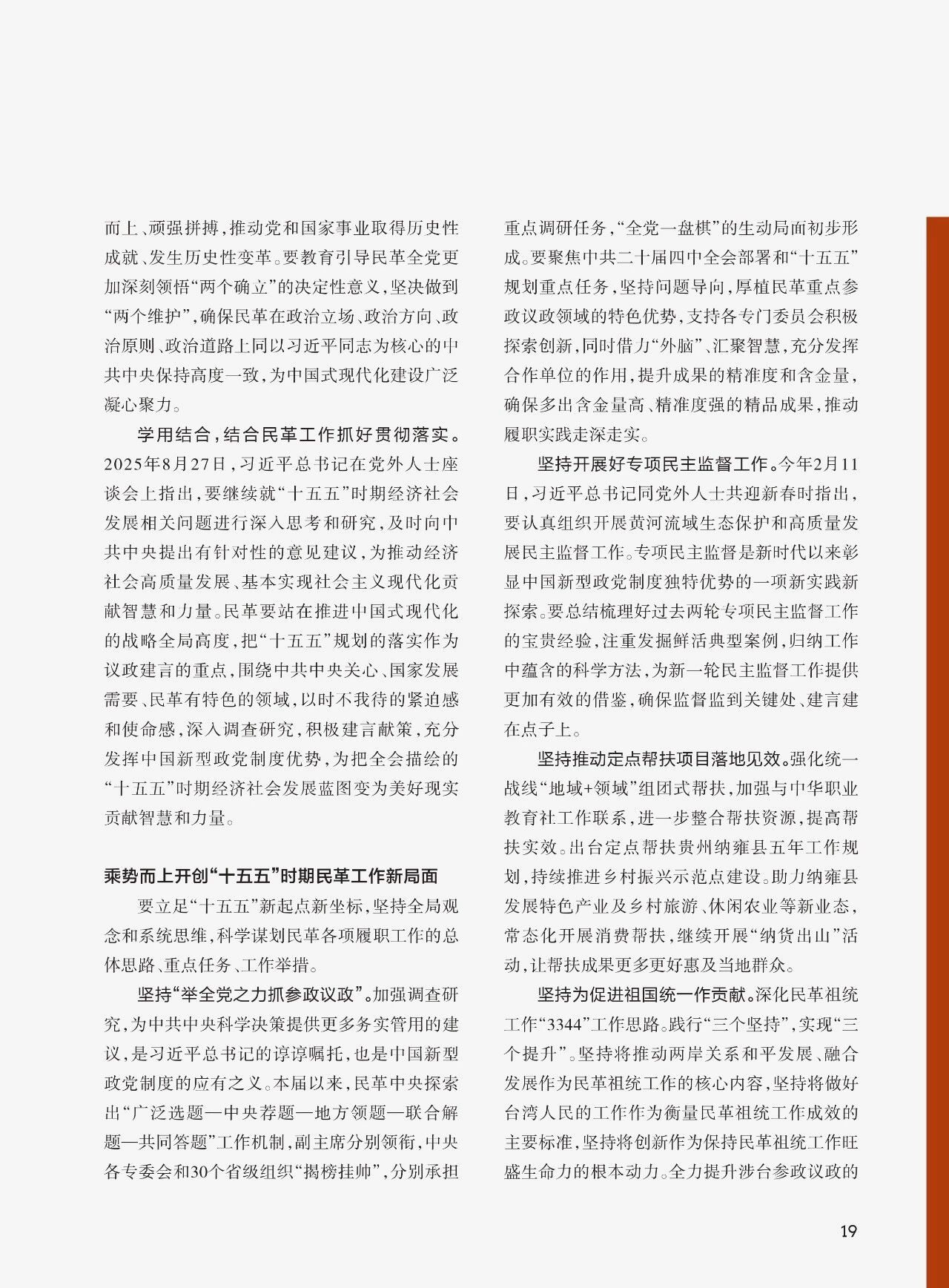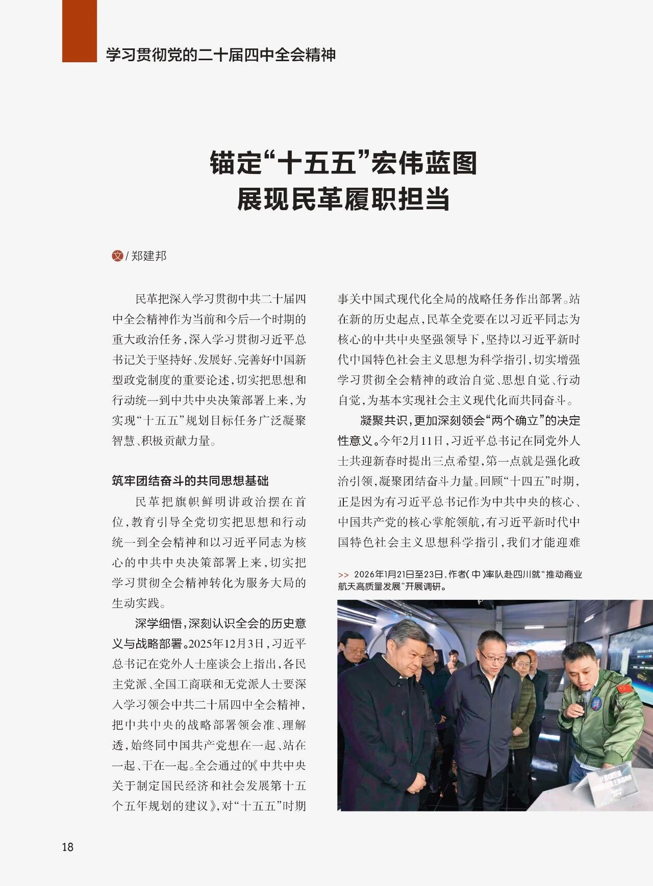 郑建邦在《旗帜》撰文:锚定“十五五”宏伟蓝图 展现民革履职担当