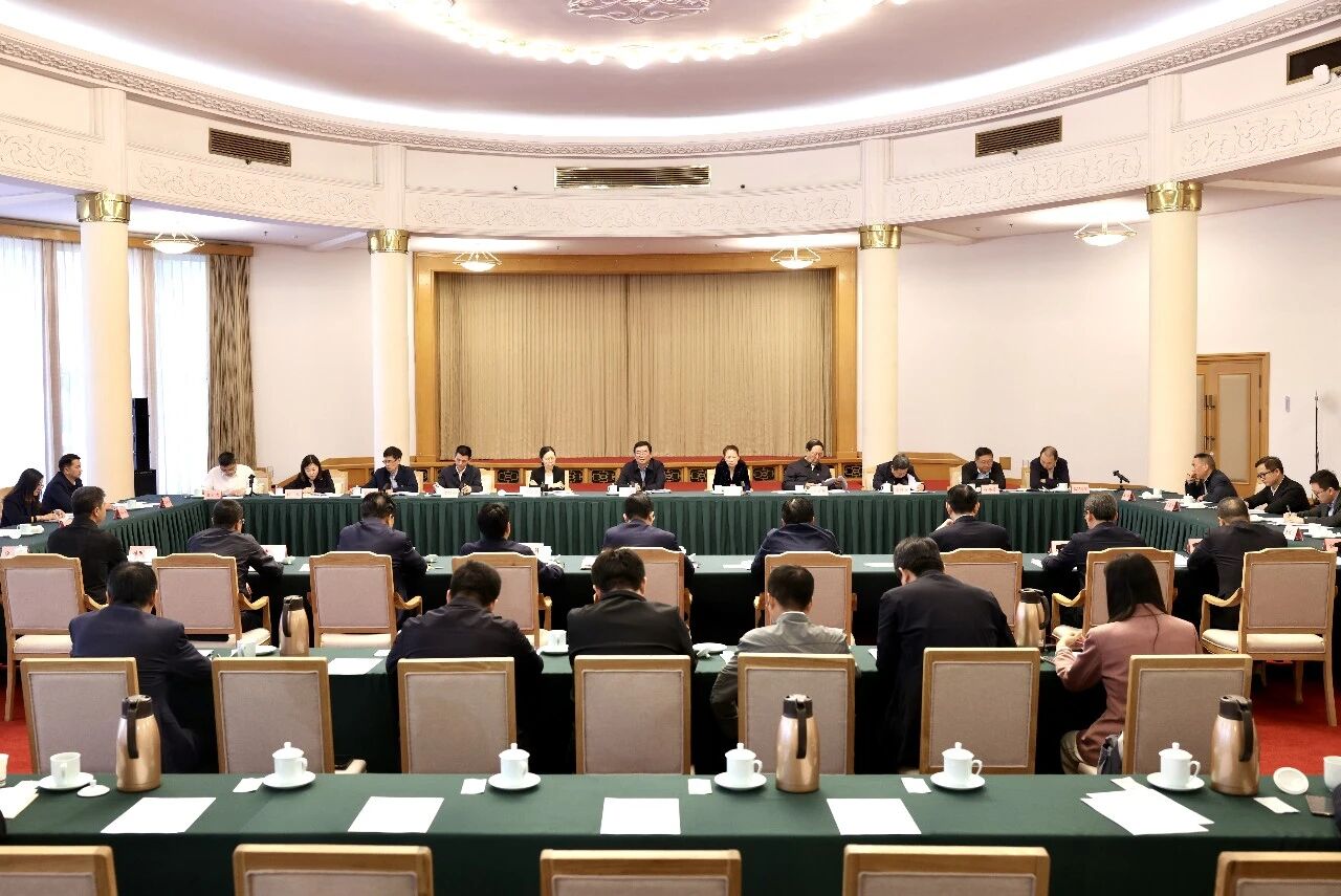 4月16日,调研组在济南召开座谈会。中共山东省委常委、常务副省长张海波介绍山东省推动全国统一能源市场体系建设有关情况,中共山东省委常委、统战部部长邓云锋主持座谈会,山东省有关单位负责同志、企业家代表发言。