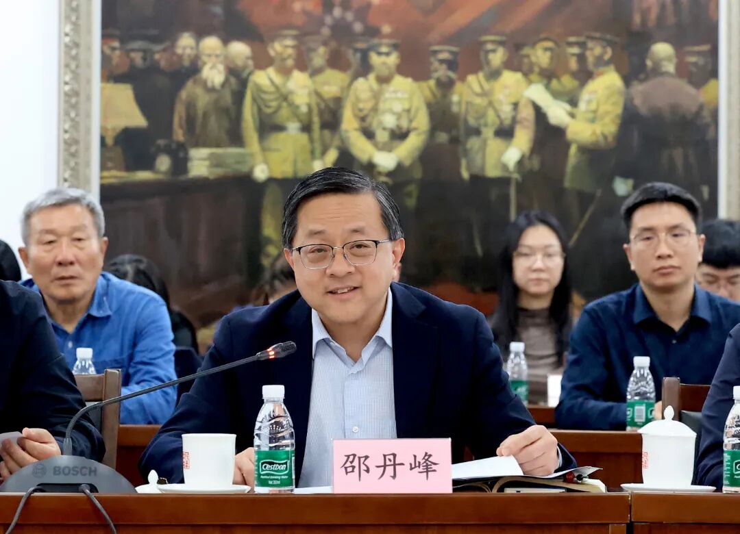 座谈会上,团结报社社长邵丹峰汇报报社相关工作情况,两位员工代表发言。